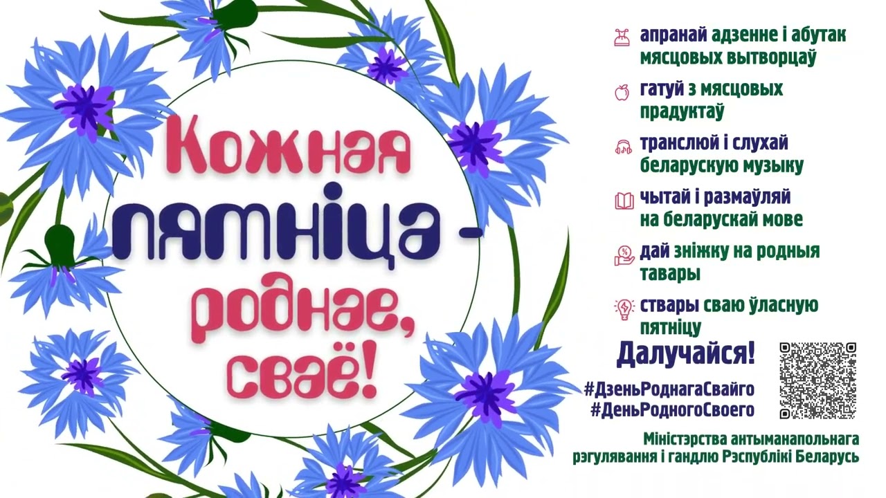 Министерство антимонопольного регулирования и торговли Республики Беларусь запускает проект «Кожная пятница – роднае, сваё» — масштабную инициативу, направленную на поддержку отечественного производителя и популяризацию белорусской культуры.