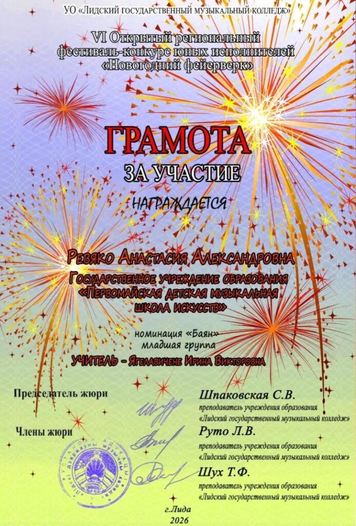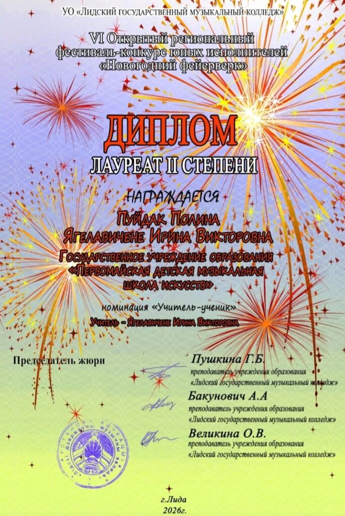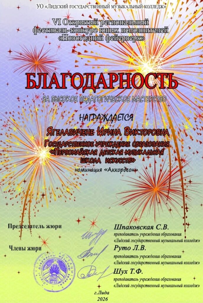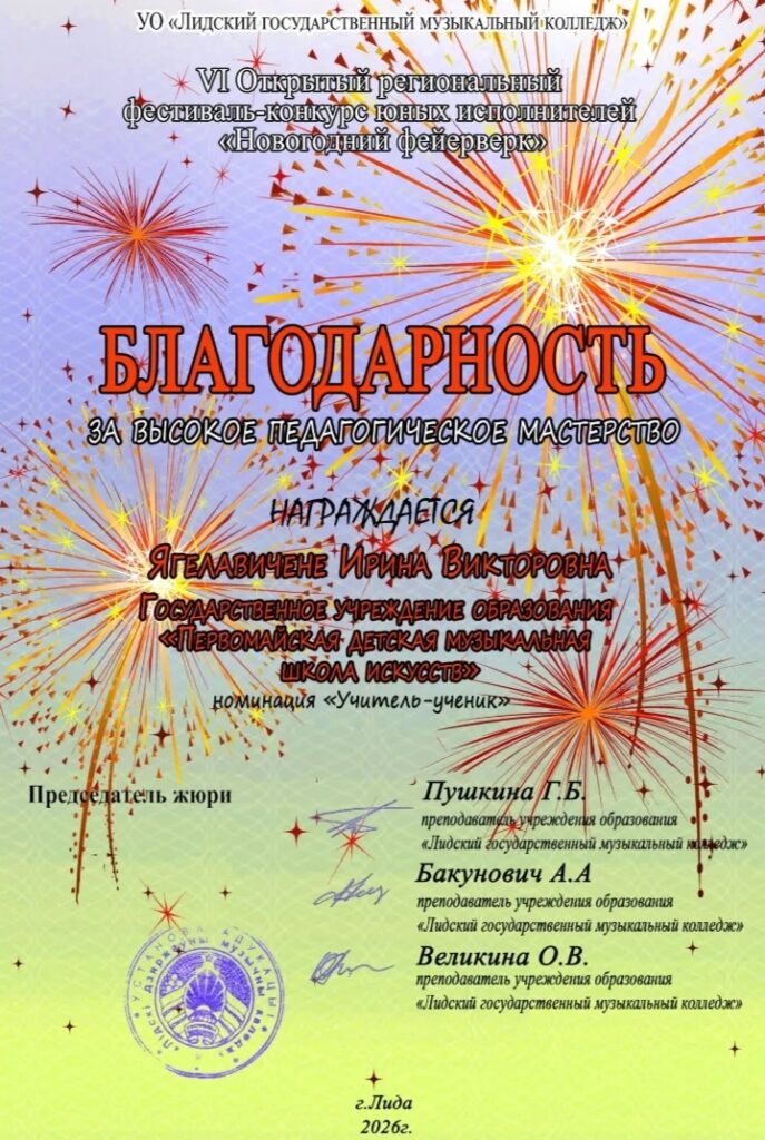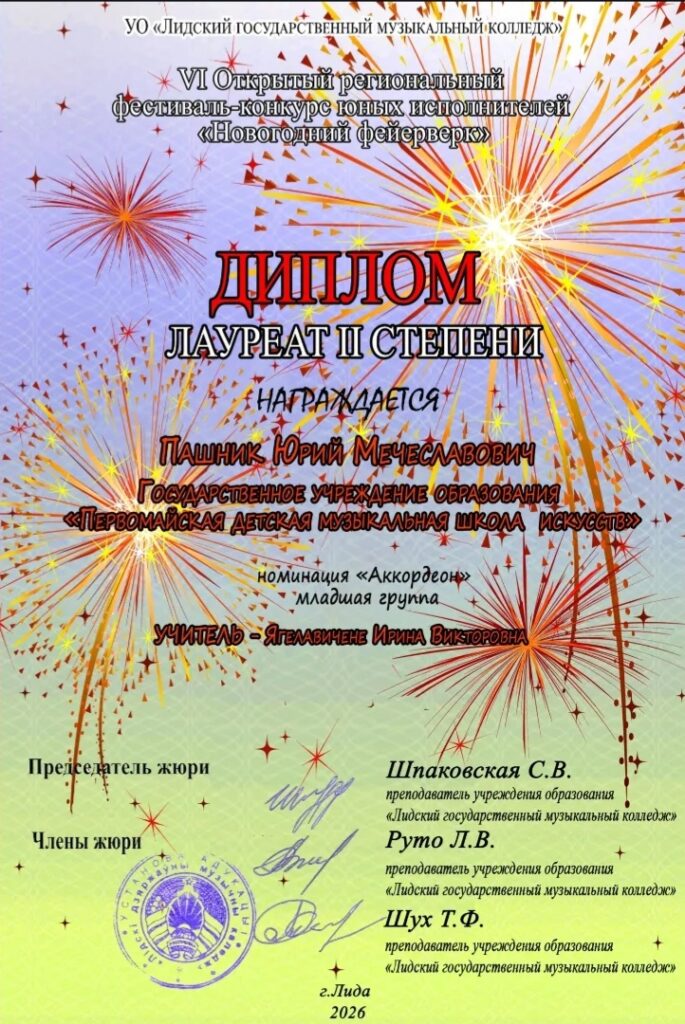 Актуальные новости VI ОТКРЫТЫЙ РЕГИОНАЛЬНЫЙ ФЕСТИВАЛЬ-КОНКУРС ЮНЫХ ИСПОЛНИТЕЛЕЙ «НОВОГОДНИЙ ФЕЙЕРВЕРК». Итоги. Автор: pdmsh_admin28.01.202604.02.2026 Поздравляем!