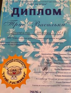Лауреат 1 степени Трио «Васильки» (Бакунова Николь, Тулуп Мария, Ясюкайтис Ярослав)