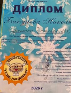 Лауреат 1 степени Бакунова Николь